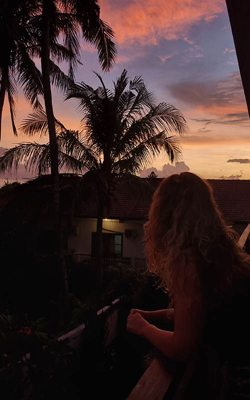 Unser Hotel liegt in einer Seitenstraße zwischen Reisfeldern, 5 Gehminuten vom Strand. Man hört hier nichts, außer dem Meeresrauschen. Da merkt man erst, wie laut und unentspannt die letzten Tage auf den Philippinen für uns waren.