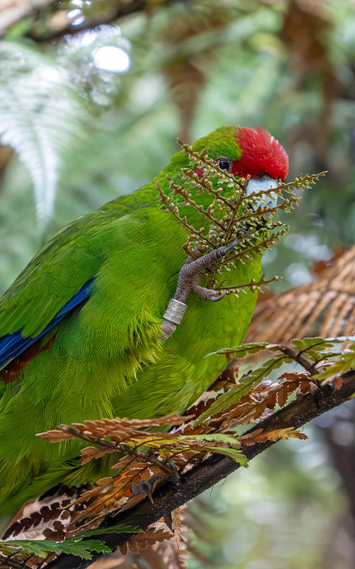 Neben dem süßen Nationalvogel gab es aber noch jede Menge andere Vogelarten im Park. Besonders toll sind die Papageienarten Kea, Kakapo und Kakariki. Der Kea ist der einzige alpine Papagei der Welt und sehr intelligent. Die kleinen, giftgrünen Kakarikis gibt es mit verschiedenen Haubenfarben, von rot bis gelb. Ebenfalls nur in Neuseeland beheimatet ist die Kereru (Neuseeland Taube). Sie ist unglaubliche 50 cm groß und ein wahrer Riese im Vergleich zu den deutschen Tauben. Verschiedene einheimische Entenarten und weitere Vogelarten gab es in weiteren Gehegen zu sehen.