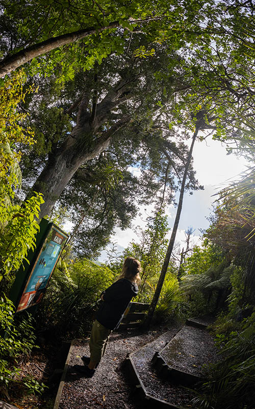 Heute ging es von Auckland nach Hamilton. Auf dem Weg hielten wir beim „Hakarimata Walkway“. Verschiedene Wanderwege führen dort durch den Wald. Wir entschieden uns für den „Kauri Loop Track“, um uns so den neuseeländischen Kauri Baum aus nächster Nähe anzusehen. Die meisten und größten Kauri Bäume des Landes befinden sich ganz im Norden der Insel. Glücklicherweise findet man aber auch noch einige Bäume auf dem Rest der Insel. Neben kleineren Exemplaren entdeckten wir auch den Hakarimata Kauri, den größten Kauri Baum in diesem Wald.
