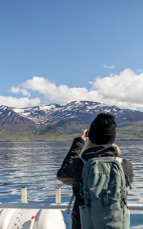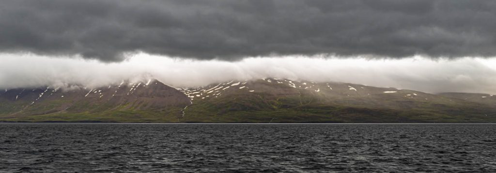 Heute hatten wir tatsächlich mal typisch isländisches Regenwetter. Für uns nicht so dramatisch, denn der Tag ging fast ganz für die Weiterfahrt gen Norden drauf. Die fast 5 stündige Fahrt führte uns in den Ort Akureyri am Fuße eines Fjords. Nach der langen Fahrt holten wir uns dort erst einmal einen Kaffee und schlenderten dann durch die kleine Innenstadt. Einen gekauften Merinopulli später fuhren wir zum 30 Minuten entfernten Hafen und der Fähranlegestelle. Dort parkten wir unser Auto am kostenlosen Parkplatz und warteten auf die Fähre. Unsere nächste Unterkunft liegt nämlich auf der kleinen Insel Hrisey zu der man nur per Boot kommt. Die Überfahrt dauerte knapp 20 Minuten und war trotz regnerischem Wetter und Wind erstaunlich ruhig. Bezahlt wurde auf dem Boot beim Kapitän und mit uns waren nur 10 andere Passagiere an Bord. Auf Hrisey wohnen nur 160 Menschen und so ziemlich alles ist fußläufig erreichbar auf der 7,5 km langen und 2,5 km breiten Insel. Eine süße Insel mit netten Bewohnern und viel Platz für wenige Menschen. Hier scheint die Welt noch in Ordnung zu sein. Da der erste Montag im August offizieller Feiertag in Island ist, hatten alle Restaurants und Geschäfte geschlossen. Ein kleiner Selbstbedienungs-Kiosk vor dem Supermarkt versorgte uns aber mit dem Nötigsten und wir hatten noch ein paar Lebensmittel aus der letzten Unterkunft für ein Abendessen dabei. Den verregneten Abend verbrachten wir zusammen am Küchentisch und planten die nächsten Ausflüge.