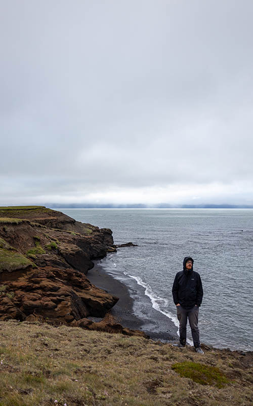Zurück in der Blockhütte marschierten Chris und ich warm eingepackt noch einmal los bis zur nahegelegenen Küste. Mit einem Fernglas, das in der Unterkunft hing, bewaffnet, wollten wir noch ein bisschen nach Tieren Ausschau halten. Der Papageientaucher, oder auch Puffin genannt, fehlt uns noch als typisches isländisches Tier. Wir entdeckten ihn leider nicht, dafür sahen wir jede Menge anderer Seevögel und natürlich auch wieder Pferde. Wieder aufgewärmt in der Hütte, waren wir alle ziemlich müde und gingen früh schlafen.