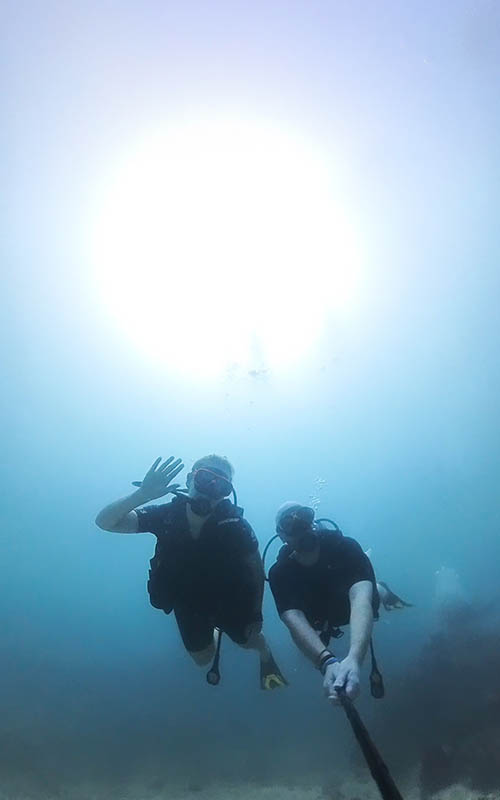 Wir waren heute mal wieder sehr früh auf den Beinen, aber natürlich für einen sehr guten Grund. Endlich ist es soweit und wir gehen wieder tauchen. Chris und ich haben ja 2018 den Open Water Diver auf Bali gemacht (lange ist es her). Chris hat 2019 noch in Bayern den Advanced Open Water Diver dran gehängt, aber seitdem waren wir beide nicht mehr unter Wasser. Ich war dementsprechend nervös, ob nach 5 Jahren noch irgendeine Art von Wissen vorhanden sein würde, oder ob ich den ganzen Kurs am besten gleich nochmal mache. Es stellte sich heraus: es ist nicht wie Radfahren, aber man kommt überraschend schnell wieder rein.