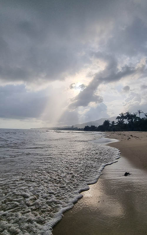 Da das Wetter auch recht wechselhaft war, sind wir erstmal in der Unterkunft geblieben und nachmittags dann doch noch zum Strand. Wir wollten einen neuen Abschnitt zum Schnorcheln ausprobieren. Leider war das Wasser dafür zu trüb und der Wellengang auch recht stark. Wir haben eine Runde gebadet und als wir uns gerade am Strand wieder trocknen wollten, fing es an zu regnen. Schon seltsam, wenn man nass in Badesachen am Strand im Regen sitzt. Nach 5 Minuten war es aber auch schon wieder vorbei. Allerdings ließ sich die Sonne danach auch nicht mehr richtig blicken und so packten wir zusammen und sind zurück in die Wohnung gefahren. Gut, dass wir dort einen überdachten Balkon und einen Wäscheständer haben. So wurden unsere Badesachen bis zum nächsten Tag immer wieder trocken.
