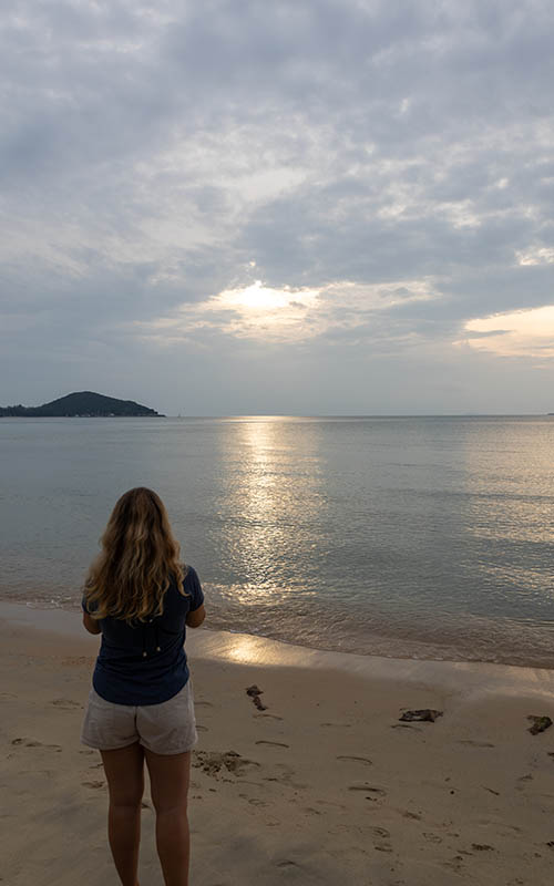 Hoch ging es auf jeden Fall einfacher als runter und so rutschten wir fast auf dem Hintern über die glatten Steine nach unten. Man muss hier einfach immer mal wieder von den bekannten Wegen abweichen, wenn man irgendwo alleine sein will. Es war trotzdem ein schöner Ausflug und wir hatten insgesamt eine tolle Zeit auf Ko Samui. Abends gaben wir unseren Roller zurück und packten unsere sieben Sachen wieder in unsere Rucksäcke. Irgendwie habe ich das Gefühl, mein Rucksack wird immer schwerer, obwohl ich das ein oder andere Stück schon aussortiert habe.