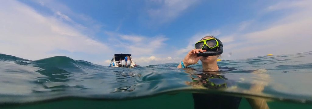 Wir waren eher froh, als wir nach einer Stunde wieder von der Insel ablegten. Wir fuhren weiter aufs Meer hinaus zu einem Schnorchelspot.