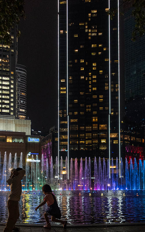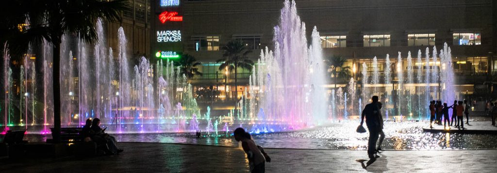 Draußen vor den Türmen gibt es jeden Abend beleuchtete Wasserspiele zu wechselnden Songs. Die haben wir uns noch von einer Parkbank aus angesehen. Ein schöner letzter Abend und ein gelungener Abschluss für unseren Kuala Lumpur Aufenthalt.