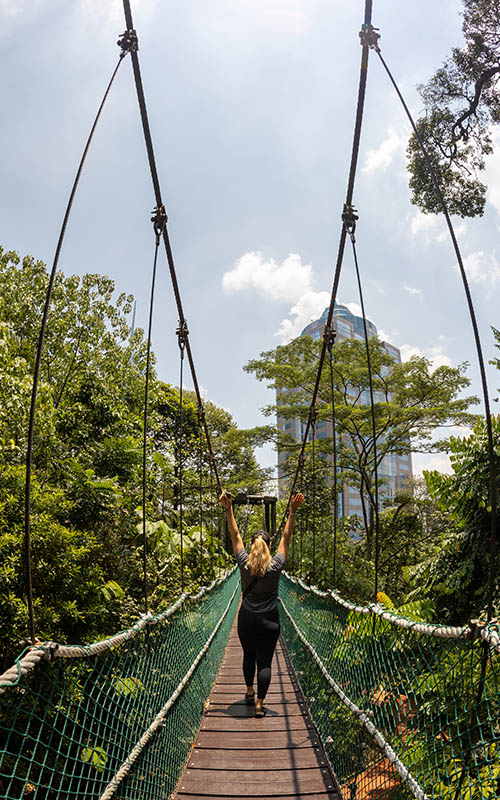 In dem Park wars dann auch angenehm schattig, allerdings der Preis auch wieder recht teuer (10 MYR für Einheimische und 40MYR! für Touristen! das sind umgerechnet 8 Euro pro Person). Man muss vielleicht erklärend dazu sagen, dass der Park bis 2019 umsonst war. Klar auch hier hat man sicherlich die Folgen von Corona, vor Allem beim Tourismus zu spüren bekommen, aber den vierfachen Preis fanden wir schon ein bisschen unfair. Die Eintrittspreise scheinen uns sowieso oft unsinnig und wie ausgedacht (der Fernsehturm kostet z.B. nur 11 Euro?!). So günstig das Essen auch ist, so teuer ist im Verhältnis dann der Rest. Nach den hügeligen Pfaden durch den Park, waren wir dann auch schon wieder mit unseren Kräften am Ende und sind zurück ins Hotel.