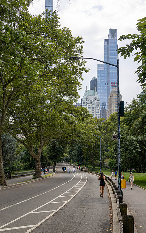 Als der Himmel sich verdunkelte und es zu Donnern begann, suchten wir unter einem Baum Schutz. Nach einer halben Stunde war der Regen fast vorbei und wir liefen weiter. Wir besuchten das Jacqueline Kennedy Onassis Reservoir, einen riesige angelegten See mit beliebter Jogginstrecke. Verschiedene Skulpturen und Wahrzeichen verstecken sich überall im Park. Wir kamen noch an verschiedenen Bronzefiguren vorbei, wie Alice im Wunderland, Hans Christian Andersen und den Schlittenhund Balto. Bei der Andersen Statue werden jeden Samstag im Sommer Geschichten aus seinen Büchern vorgelesen. Was für eine schöne Idee! Irgendwie scheint hier im Park sowieso die Zeit stehengeblieben zu sein. Menschen lesen hier noch richtige Bücher und Zeitungen und schauen nicht bloß ins Handy. Wir saßen auf einer Parkbank, lauschten einer Jazzgruppe und beobachteten die Passanten. Der Central Park ist einfach schön. Eichhörnchen, wohin man sieht und überall Pferdekutschen.