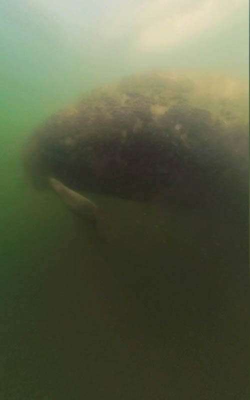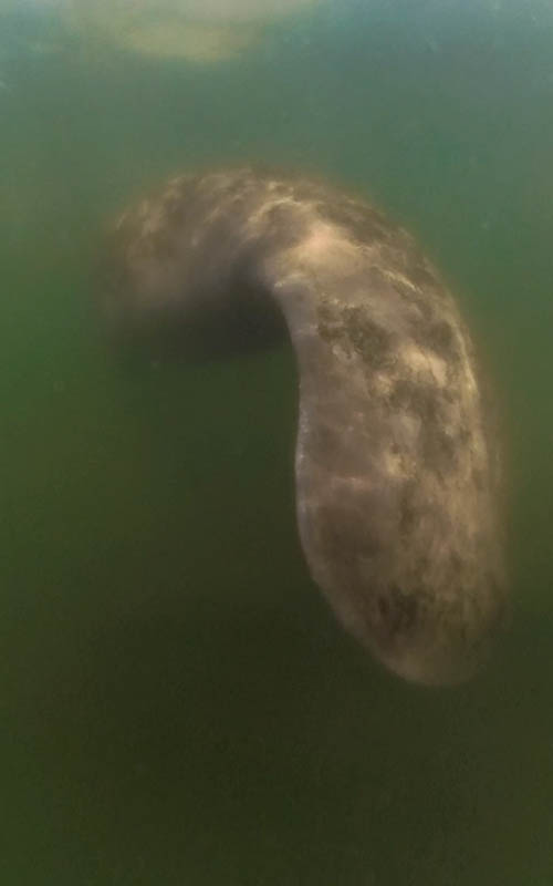 Sie werden bis zu 3 Meter lang und über 500 Kilogramm schwer. Wenn sie direkt unter uns vorbei schwammen, konnten wir die Rücken der riesigen Tiere erkennen. Da sie regelmäßig zum Lufftholen auftauchen, konnte man sie an der Oberfläche auch etwas besser sehen, als im tieferen Wasser. Insgesamt war es jedoch sehr schwierig, überhaupt etwas zu erkennen. Die Körper der Manatees haben die gleiche Farbe wie der Flussgrund und sind teilweise mit Algen bewachsen. Dadurch heben sie sich farblich kaum ab und verschwimmen regelrecht im grünlichen Wasser. Oft bemerkte man nicht einmal einen anderen Schnorchler direkt neben sich und musste aufpassen, nicht zusammen zu stoßen. Aufgrund der Fotos auf der Webseite des Anbieters hatten wir sichttechnisch etwas mehr erwartet. Aber immerhin haben wir ein paar Tiere gesehen und konnten diese Erfahrung machen.