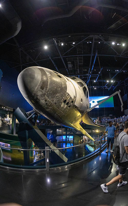Nach einer kleinen Mittagspause besuchten wir noch die Ausstellung des Space Shuttle Atlantis. Nach einem tollen Einführungsvideo öffnete sich die Leinwand und gab den Blick auf das originale Space Shuttle frei. Die Atlantis wurde 1984 fertiggestellt und bis 2011 verwendet. Die gesamte Ausstellung war dem Space Shuttle gewidmet. Seit seiner Erfindung in den frühen 80ern konnten Raumschiffe wiederverwendet werden und revolutionieren so die moderne Raumfahrt. In Nachbauten der Innenräume bekommt man ein Gefühl dafür, wie die Astronauten in einem Space Shuttle lebten. Nachdem wir uns noch das Außengelände mit dem „Rocket Garden“ und dem „Space Mirror Memorial“ angeschaut hatten, reichte es uns für heute. Unsere Köpfe waren voll und draußen war es unerträglich heiß.
