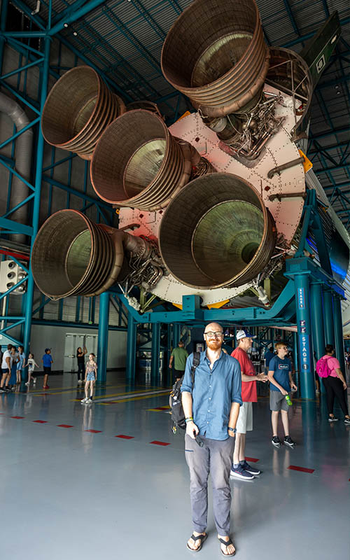 Weiter ging es mit der neuesten Ausstellung im Center, dem „Gateway“. Hier wurden uns Raketen und Kapseln der neuesten Generation vorgestellt. Neben den aktuellen Boeing Kapseln sahen wir hier auch die Modelle von Blue Origin und natürlich Space X. In einem weiteren Simulator begaben wir uns auf eine Mission zum Mars und waren auch hier mehr als beeindruckt. Nach einer kleinen Mittagspause gingen wir ins IMAX Kino und sahen und einen Film über das James Webb Teleskop an. Von seiner Entwicklung, über seinen Weg durchs All, bis hin zu den ersten Bildern wurde alles sehr spannend erklärt. Unglaublich, wozu die Menschheit mittlerweile im Stande ist.