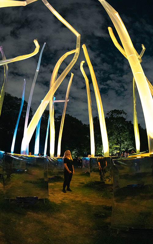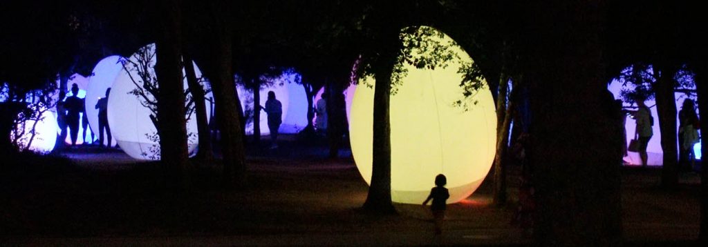 Anschließend waren wir noch im teamLab Botanical Garden. Eine künstlerische Lichtinstallation im botanischen Garten von Osaka. Hier wurde mit verschiedenen Lichteffekten in verschiedenen Farben zwischen den Bäumen und Pflanzen vor Ort echt etwas Magisches geschaffen. Beleuchtete Kugeln und Gebilde, die teilweise bei Berührung die Farbe wechselten, projeziert sowie aufgeblasen wurden, oder im Wasser schwammen. Zusammen erzeugten die Installationen eine eigene, fantastische Welt. Wir hatten gar nicht so viel erwartet und waren sehr begeistert. Ein toller Abschluss für unseren Aufenthalt in Osaka. Uns hat es hier sehr gut gefallen und nun sind wir gespannt, was Kyoto für uns bereit hält.