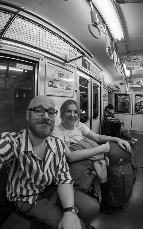 Als wir dann endlich zur Unterkunft aufbrechen konnten, hatten wir auch Premiere mit unserem Gepäck. Zum ersten Mal haben wir wirklich alles am Körper getragen und sind damit weiter gelaufen (in Sri Lanka hatten wir ja von Anfang an das Tuktuk und in Kuala Lumpur hatten wir ein Airportshuttle). Ich würde lügen, wenn ich behaupten würde, es sei nicht schwer und unbequem auf Dauer! An der Metrostation angekommen mussten wir uns im Netz der ganzen Verbindungsmöglichkeiten erstmal zurecht finden. Glücklicherweise stehen die Haltestellen auch in aus unserer Sicht „lesbarer“ Schrift an und dank einer netten Frau am Ticketschalter haben wir uns sogar noch Geld gespart und mussten nicht solange warten. Besonders die japanischen Dienstleister sind wahnsinnig freundlich und hilfsbereit! Nach einer 50 Minütigen Zugfahrt mussten wir unser Gepäck dann noch 15 Minuten bis zur Unterkunft schleppen. (Man hätte nochmal umsteigen und in eine andere Bahn steigen können, dann wärs kürzer gewesen! Das war nach 30 Stunden wach dann aber einfach nicht mehr drin!). Wir mussten zuerst ein bisschen suchen, denn die Nummerierungen der Straßen und Gebäude ist hier „anders“. Dank der Koordinaten, die netterweise vom Airbnb Host mitgeschickt wurden, fanden wir dann aber doch noch das richtige Gebäude. Unser schnuckeliges Apartment hat 22 Quadratmeter, inklusive Küche und Bad. Das ist vermutlich japanische Standartgröße, hat aber alles was man braucht. Super sauber wie alles in Japan! Nach einem kurzen Abstecher in den Supermarkt sind wir um 20 Uhr eingeschlafen und haben bis 9 Uhr früh am nächsten Tag geschlafen.