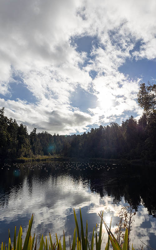Da die Prognosen für morgen zu Regen tendieren, machten wir uns lieber heute nochmal auf zum „Lake Matheson“. Auch hier gibt es Wanderwege rund um den See. Von einer Aussichtsplattform sieht man bei idealem Wetter den Mount Cook und den Mount Tasman gespiegelt auf der Wasseroberfläche des Sees. Leider waren die schneebedeckten Gipfel der Berge hinter tief hängenden Wolken versteckt und die Wasseroberfläche zu unruhig. Dafür hatten wir einen schönen Ausblick auf eine Schar von Wildgänsen, die sich mitten im See breit gemacht hatten. Der See scheint eine beliebte Sehenswürdigkeit zu sein, denn mit uns war eine ganze Busladung Chinesen unterwegs. Wir hörten sie schon von Weitem am Steg herumbrüllen. Wir versuchten, den größeren Gruppen so gut es ging aus dem Weg zu gehen und die Ruhe des Waldes zu genießen. Ein schöner Spaziergang, obwohl man vom See die meiste Zeit leider nichts gesehen hat (mit der Aussicht scheinen die Kiwis im Allgemeinen so ihre Schwierigkeiten zu haben).