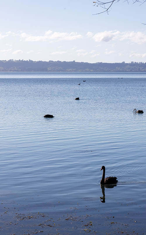 Aufgrund der Jahreszeit gab es im Garten nicht mehr allzu viele Blumen zu sehen, doch wir entdeckten noch ein paar Rosenblüten im „Rose Garden“. Der Herbst neigt sich hier langsam dem Ende entgegen und viele Bäume sind schon kahl. Das Laub an den übrigen Bäumen ist wunderschön gelb oder leuchtend rot gefärbt. Bei Sonnenschein ist der Herbst gar nicht so übel und mit 15 Grad regelrecht warm. Ein kleiner Spaziergang führte uns an den „Lake Rotorua“. Wir setzten uns auf eine Bank in der Sonne und beobachteten die zahlreichen schwarzen Schwäne auf dem See. Wir sahen auch ein Wasserflugzeug beim Abflug. Danach reichte es uns eigentlich schon wieder für heute. Wir sind beide durchgehend müde und im Moment sehr erschöpft. Vielleicht kommt nun doch die Reisemüdigkeit durch, oder es ist einfach das kalte Wetter.