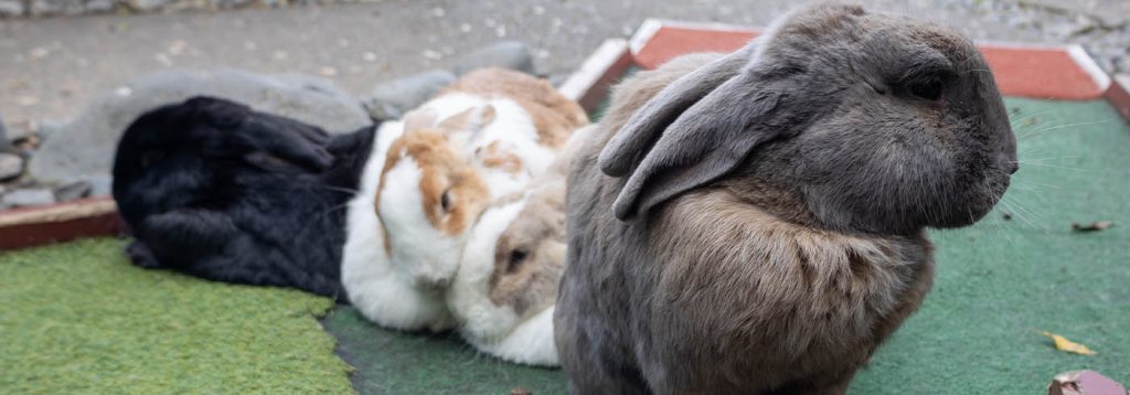 Die Anlage ist ganz süß gemacht und die Hasen haben kleine Häuschen und Rückzugsmöglichkeiten, wenn sie ihre Ruhe haben wollen. Außer uns waren kaum Leute vor Ort und ich hatte genug Zeit zum Hasen streicheln. Die Rauchmaschine, Seifenblasen und Musik hätte es für uns zwar nicht unbedingt gebraucht, doch das sorgt natürlich für Stimmung und die Tiere lassen sich davon gar nicht aus der Ruhe bringen. Schwieriger wird es, wenn sie sich eine der Minigolfbahnen zum entspannen aussuchen. Mit ein paar Streicheleinheiten konnten wir sie aber meist dazu bewegen, die Bahn anschließend frei zu machen. Hasen- Minigolf! Warum ist sonst noch keiner auf die Idee gekommen?! Mir half es auf jeden Fall, meine katastrophale Niederlage besser wegzustecken. Beim Streicheln des flauschigen Hasenfells vergisst man einfach alle Sorgen 🙂
