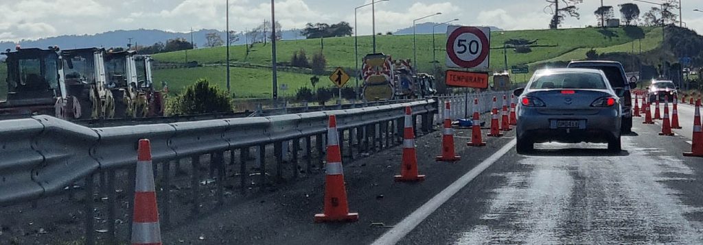 Heute ging es weiter Richtung Norden. Unsere nächste Unterkunft liegt in der Region Rotorua. Dort in der Gegend um den Lake Taupo waren wir auch schon auf dem Weg zur Südinsel. Die Autofahrt war sehr verregnet und anstrengend. Das Fahrverhalten und die ständigen Baustellen im Land waren dabei nicht hilfreich. Das Komische ist, dass es überall Baustellen gibt, nur scheint nie irgendjemand zu arbeiten. Nach über 50 Baustellen, die wir schon zu Gesicht bekommen haben, kann das auch langsam kein Zufall mehr sein. Wenn überhaupt mal ein Bauarbeiter in Sicht ist, steht der immer mit Handy und/oder Zigarette da, arbeitet aber nicht. Kein Wunder, dass es so viele Baustellen gibt, wenn nie gearbeitet wird. Dafür können sie aber ganz toll Baustellenhütchen aufstellen und davon gleich hunderte. Am liebsten im Abstand von 50 cm zueinander. So sind damit so ziemlich alle Straßen zugestellt. Optisch ersichtlich war uns allerdings noch nie, warum Teile der Fahrbahn gesperrt waren, denn die sahen für uns immer unbeschädigt aus. Vielleicht verstehen wir es auch einfach nicht.