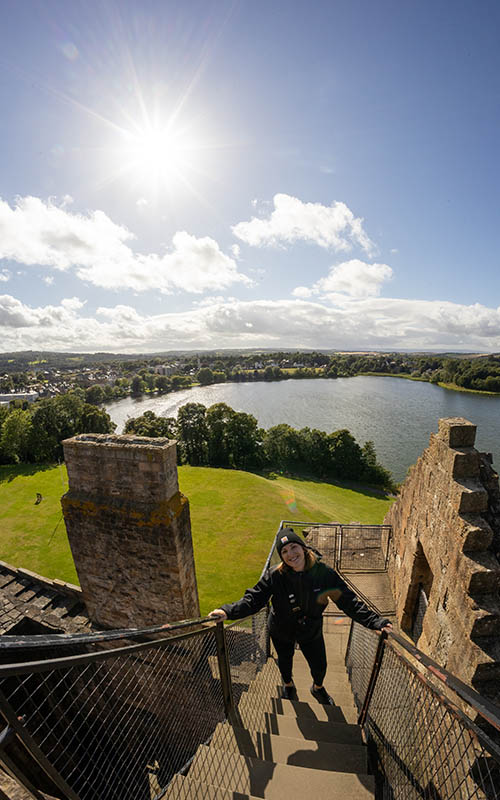 Im Anschluss fuhren wir noch zum „Linlithgow Palace“, einer Schlossruine im gleichnamigen Ort. Der mehrstöckige Palast steht zum größten Teil noch und war über zweihundert Jahre lang eine königliche Residenz. Zu den berühmtesten Bewohnern gehörte wohl Mary, Queen of Scots, die hier auch geboren wurde. Vielen ist sie besser bekannt als Maria Stuart und durch ihren Kampf um den Anspruch auf den englischen Thron. Den bestieg sie jedoch nie, sondern ihre  Tante 2. Grades, Elisabeth I.. Eine spannende Geschichte und ein geschichtsträchtiger Ort. Wir liefen durch zugige Hallen und verliefen uns fast in den vielen Räumen und Durchgängen der Ruine. Wir erklommen auch den begehbaren Turm und hatten von oben eine schöne Aussicht auf die Anlage. Der Springbrunnen in der Mitte des Schlossen ist auch heute noch (ohne Wasser) ein Hingucker. Viele Symbole und Figuren reihen sich über mehrere Etagen aneinander. Zwei Burgen/Paläste/Ruinen, wie sie unterschiedlicher nicht sein könnten. Uns haben sie beide sehr gut gefallen.