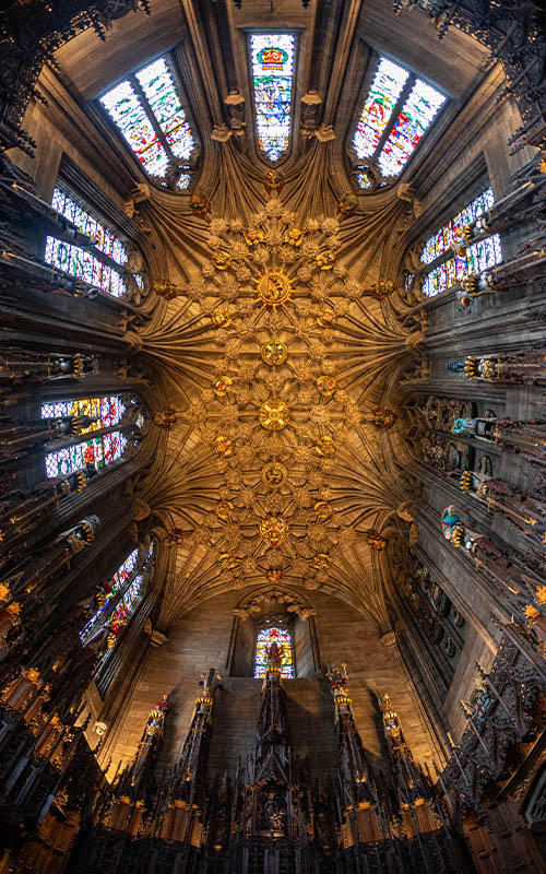 Wir besuchten die „St. Giles Cathedral“, die die Hauptkirche der Church of Scotland ist und seit dem 13. Jahrhundert existiert. Innen wie außen gab es viele schöne Details zu bestaunen. Besonders gefallen hat uns der kleine Anbau der Thristle Chapel. Die Kapelle des „Distel- Ordens“ war voll detaillierter Holzschnitzereien und Symbolen. Auf jeden Fall einen Besuch wert. Wir liefen die sog. „Royal Mile“ hinunter und wurden von den Touristenmassen und aufdringlichen Flyer-Verteilern fast erdrückt. Die schmalen Straßen und Gehwege Edinburghs sind definitiv nicht für so viele Besucher ausgelegt. Wir liefen noch zu den „Scotman Steps“,einen Aufgang mit 104 Stufen aus verschiedenen Marmorsorten aus aller Welt. Eigentlich schön, könnte aber dringend eine Grundreinigung vertragen. Anschließend machten wir eine kleine Verschnaufpause in einem Cafe.