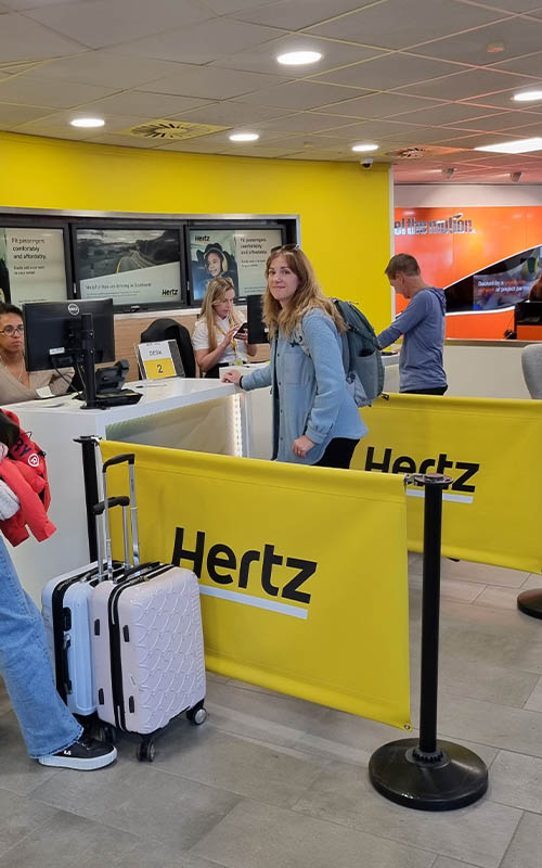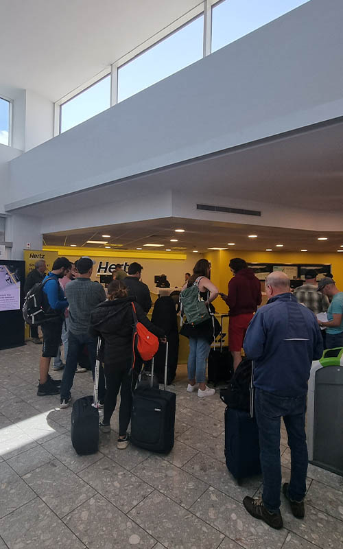 Was eigentlich eine kurze Anreise werden sollte, wurde im Laufe des Tages leider zu einer Geduldsprobe für uns. Beim Autovermieter war die Hölle los und wir mussten uns per QR Code in einer virtuellen Warteschlange anstellen. Auf Platz 21 dauerte es knapp 1,5 Stunden, bis wir endlich dran kamen. Auch der Ausleihvorgang an sich dauerte noch einmal 30 Minuten, dank umständlichem und langsamen Service. Als wir dann endlich zum Parkplatz der Mietwagen kamen, sahen wir ein Pärchen gerade „unser“ Auto beladen. Wie sich herausstellte, hatten wir beide das gleiche Auto gemietet. Da die beiden zuerst da waren, marschierten wir also genervt zurück. Eine weitere 1,5 stündige Warteschlange kam für mich nicht nochmal in Frage, also ging ich schnurstracks wieder zu der jungen Frau, die uns vor wenigen Minuten das bereits belegte Auto gegeben hatte. Nach einer halbherzigen Entschuldigung suchte sie geschlagene 20 Minuten in ihrem PC nach einem anderen Auto für uns. Keine Ahnung warum es so kompliziert sein muss und wie veraltet ein Buchungssystem bei einem großen Anbieter wie Hertz sein kann.