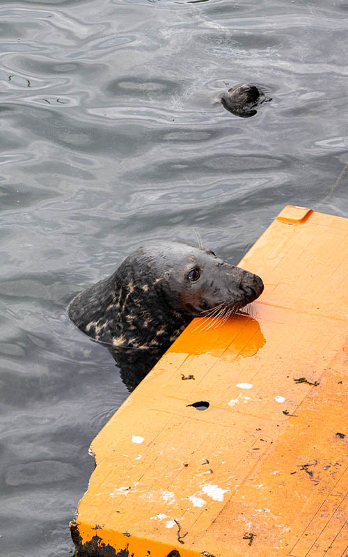 Im Wasser warteten schon zwei große Seehunde auf ihren nächsten Happen. So haben wir schließlich doch noch Seehunde in Schottland gesehen. Vielleicht nicht ganz so wild und an einem Strand, wie wir uns das vorgestellt hatten, aber immerhin. Auf jeden Fall machte es Spaß, den Leuten beim „Angeln“ und den Seehunden beim Fressen zuzuschauen 🙂