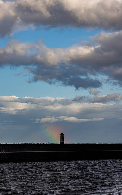 Am Ende des Piers befindet sich ein kleiner Leuchtturm, zu dem wir laufen wollten. Es bildete sich gerade sogar ein kleiner Regenbogen, als wir darauf zu liefen.