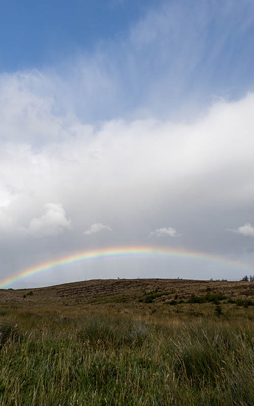 Wir wollten auf einem Parkplatz den Regen abwarten, um den Old Man of Storr noch einmal auf dem Rückweg fotografieren zu können. Nach 5 Minuten war der Wolkenbruch vorbei und als wir losfuhren, entdeckten wir zu unserer Linken einen gigantischen Regenbogen über dem Meer! Ich habe schon ewig keinen kompletten Bogen (Anfang und Ende!) mehr gesehen. Die Farben leuchteten richtig und wir machten schnell so viele Fotos wie möglich. Nach 10 Minuten war er schon wieder verschwunden. Was für ein Glück, dieses Naturschauspiel miterlebt zu haben! Die Heimfahrt dauerte zwar 3 Stunden, war aber atemberaubend schön. Irgendwie scheint die Landschaft in Schottland neu und unbekannt auszusehen, sobald man aus der entgegengesetzten Richtung kommt. Vieles hatten wir bei der Hinfahrt gar nicht gesehen (z.B. versteckte Wasserfälle) und wurden auf der Heimfahrt noch einige Male überrascht. Die Landschaft ist wirklich einmalig schön und sehr abwechslungsreich! Das war ein ganz toller letzter Tag in den Highlands für uns. Nach dem langen Ausflug beschlossen wir, den Abend zu zweit in unserem Cottage zu verbringen. Wir kochten uns ein sehr leckeres Abendessen und stießen auf unseren Hochzeitstag an. Unglaublich, dass wir schon 4 Jahre verheiratet sind! Ich habe nicht nur den besten Ehemann, sondern auch den besten Reisepartner aller Zeiten 🙂