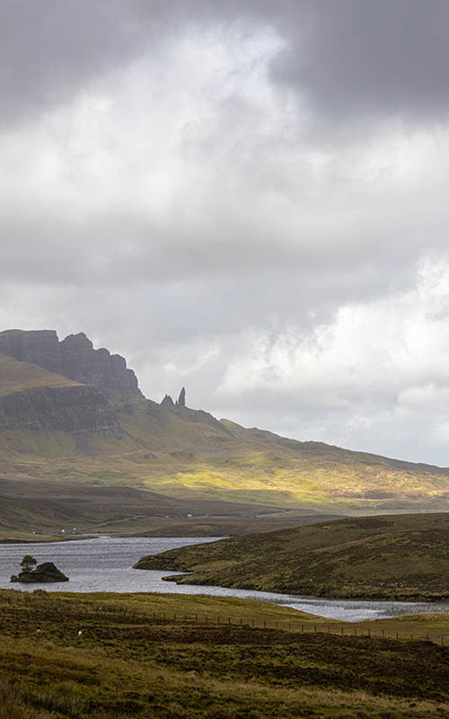 Zerklüftete Gebirgsformationen, Wasserfälle und Lochs prägen die Landschaft. Wir waren schwer begeistert und stellten wieder einmal fest, dass die Highlands in jeder Ecke anders aussehen. Wir durchquerten das schöne Fischerdörfchen „Portree“ und fuhren an der Küste entlang. Nach einer Kaffeepause beschlossen wir, noch bis zum „Old Man of Storr“ zu fahren. Der Berg zeichnet sich durch seine besondere Felsformation aus und hat wie viele Berge in Schottland natürlich auch eine Legende. Der Sage nach war der Old Man of Storr ein Riese, der auf der Insel lebte. Er starb und wurde hier begraben, wobei sein Daumen aus der Erde ragte. Den Daumen symbolisiert eine Felsnadel im Gebirge.