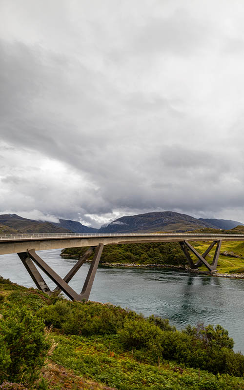 Unser letzter Halt erfolgte an der modernen und perfekt in die Berglandschaft eingebettete Kylesku Brücke. Auch hier wurden wir wieder von Scharen von Midges attackiert. Leider kamen einige beim Öffnen der Autotüren mit uns ins Auto. So wurde die Heimfahrt zu einer wilden Insektenjagd.