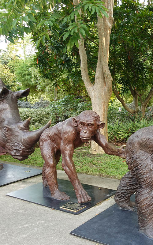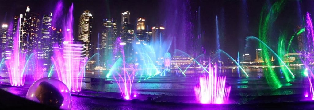 Bei Abenddämmerung liefen wir noch durch einen – für uns neuen – Teil durch den Gartenpark. Wir liefen an der fast 200 Meter langen Installation „Love the last March“ vorbei. Große Bronzefiguren von bedrohten Tierarten reihen sich hier hintereinander auf und sollen als Mahnmal dienen. Anschließend liefen wir über die Helixbrücke zurück zum Hafen. Hier wollten wir uns noch die Wasser -und Lichtshow ansehen, die hier jeden Abend stattfindet. Wir saßen leider zu weit weg um sie richtig mitzubekommen, wissen aber nun wo der beste Platz ist und werden uns das 15 minütige Spektakel morgen nochmal aus der Nähe anschauen.