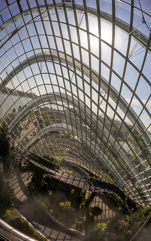 Anschließend ging es in den „Flower Dome“. Dieses Gewächshaus ist in 9 verschiedene Gärten unterteilt, die die weltweite Pflanzenvielfalt beinhalten. So kann man von Wüstenpflanzen, wie Kakteen und Sukkulenten, zu riesigen Baobab Bäumen, bunten Blumenbeeten, wie wir sie von zuhause kennen und durch mediterrane Olivenhaine laufen. Hier ist für jeden etwas dabei. Alles wirkt sehr modern und super gepflegt. Dank der gigantischen Größe verteilen sich die Besucher sehr gut in den Gärten.
