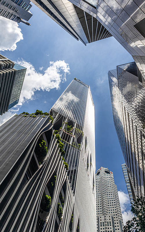 Leider ist heute schon unser letzter Tag in Singapur. Wir haben heute noch einmal versucht, so viel wie möglich von der Stadt zu sehen. Angefangen haben wir beim „CapitaSpring Building“. Ein wunderschönes, gigantisches Hochhaus, das es besonders Chris angetan hat. Es ist aber auch wirklich ein architektonisches Meisterwerk, bei dem typisch für Singapur Glas, Stahl und jede Menge Grün großartig miteinander kombiniert wurden. Eigentlich handelt es sich bei dem Hochhaus um ein 280 Meter hohes, modernes Bürogebäude. Als Tourist hat man aber die Möglichkeit, vormittags und und unter der Woche bis hoch in den Dachgarten fahren zu dürfen. Hier hatten wir einen tollen Ausblick über den Hafen und den Rest der Stadt. Durch große Öffnungen in der Fassade, die wie von einer Riesenhand zur Seite gebogen wirkten, konnten wir in alle Richtungen schauen.