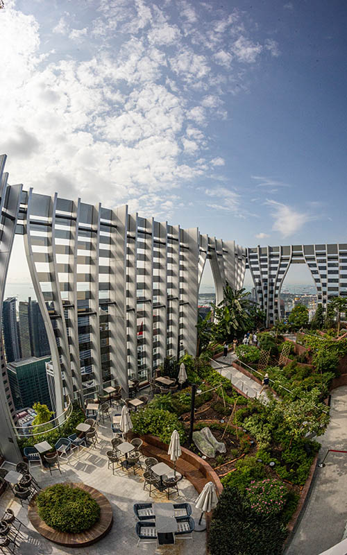 Alleine der Garten auf dem Dach beherbergt 150 verschiedene Arten von Obst, Gemüse, Kräutern und Blumen. Das dazugehörige Dachrestaurant kann sich hier direkt mit frischen Zutaten versorgen. Wieder einmal sind wir beeindruckt, wie clever hier gebaut wurde. Hier wurde wirklich die Vision einer grüneren und nachhaltigeren Zukunft umgesetzt. Hochhäuser kennen wir in Deutschland in erster Linie nur als hässliche große Schandflecken, die zweckmäßig sind. Hier in Singapur versucht man, genau das aufzubrechen und die großen Flächen sinnvoll für die Natur zu nutzen. Dabei sieht hier alles auch noch verdammt gut aus. Vielleicht sollte sich das ein oder andere Land hier einmal etwas abschauen.