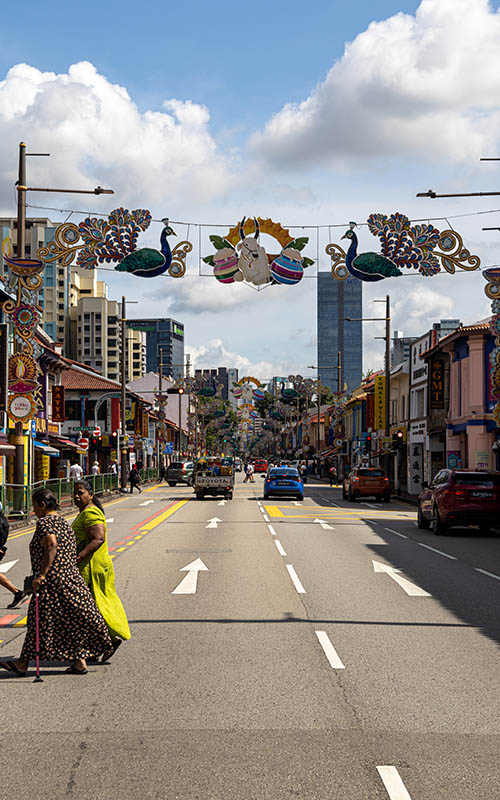 Anschließend schlenderten wir durch das „kleine Indien“. Entlang der Straße herrschte geschäftiges Treiben. In den winzigen Läden gibt es von Kleidung und Elektronik bis hin zu Haushaltswaren und natürlich jede Menge Essen so ziemlich alles zu kaufen. Indische Musik kommt aus jedem Lautsprecher, gemischt mit dem Geruch nach Räucherstäbchen, ätherischem Massageöl und Curry. So stellt man sich Indien vor. Hier natürlich in kleiner, sauberer und weniger voll. Neben den zwei großen Hindutempeln gab es noch jede Menge cooler Streetart und traditionelle Läden zu entdecken. Ein Mittagessen in einem der vielen Restaurants konnten wir uns natürlich auch nicht entgehen lassen! Es war auf jeden Fall eines der besten indischen Gerichte, die ich jemals gegessen habe.