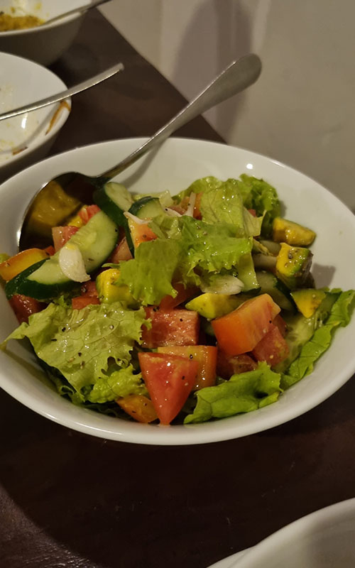 Wir haben schon gestern abend und heute morgen bei unserem Gastgeber gegessen (ein ehemaliger Koch, der jetzt das Guesthouse mit seiner Frau betreibt und für seine Gäste auf Wunsch kocht) und es war so fantastisch lecker, dass wir das auch heute abend wieder getan haben. Dieses Mal haben wir auch Fotos gemacht, damit ihr auch was davon habt 😉