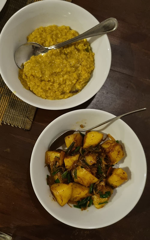 Er hat keine Speisekarte. Er kocht einfach, worauf er Lust hat und sagt mir, was glutenfrei ist. So toll und unfassbar lecker! (habe schon herausgefunden das die singalesische Küche zum Großteil glutenfrei ist! So ein Glück!) Wir würden ihn am Liebsten einpacken und mitnehmen!
