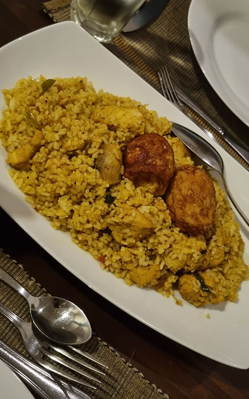 Chicken Biryani mit einem frittierten Ei oben drauf
