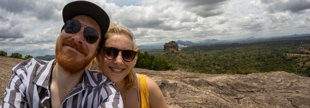 Heute haben wir in Sirgiriya den berühmten Löwenfelsen gesehen. Er gilt als UNESCO Weltkulturerbestätten auf Sri Lanka und ragt wirklich sehr beeindruckend aus der sonst eher flachen Landschaft heraus. Dank eines Tipps von einem deutschen Pärchen, das auch in unserer Unterkunft übernachtet hat, haben wir stattdessen den Nachbarfelsen Pidurangala bestiegen. Warum? Erstens kann man vom Gipfel aus super den Löwenfelsen fotografieren, zweitens kostet der Eintritt dort nur einen Bruchteil vom Eintritt des Löwenfelsens und drittens und das ist wohl der wichtigste Punkt: Es gibt viiiieeel weniger Touristen weil ein Geheimtipp 🙂