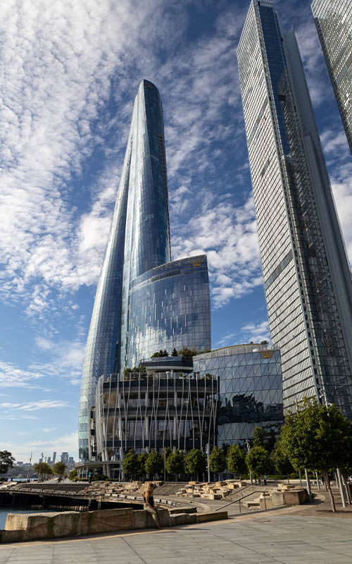 Anschließend gingen wir durch eine Grünanlage, an der Statue von Captain Cook vorbei und Richtung Hafen. Wir liefen den Pier entlang, hoch Richtung Harbour Bridge. Tolle Gebäude und schöne Ausblicke aufs Wasser soweit das Auge reicht. Chris hat sein neues Lieblingsgebäude gefunden: das Crown Sydney (oder auch One Barangaroo) ist das höchste Gebäude der Stadt und sieht dank seiner verglasten Oberfläche sehr futuristisch aus. Für mich gab’s eine neue Mütze im Bondi Beach Shop entlang des Piers.