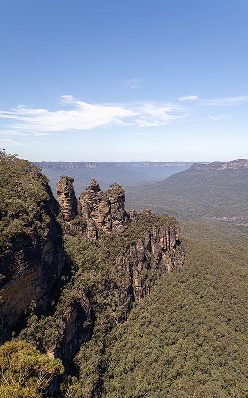 Als kleines Kontrastprogramm zur Großstadt beschlossen wir, heute einen Ausflug in die Natur zu machen. Die „Blue Mountains“ liegen in einem Nationalpark westlich von Sydney im schönen Bundesstaat New South Wales. Hier gibt es neben steilen Felswänden, Wasserfällen und riesigen Eukalyptus-Wäldern jede Menge Aussichtspunkte, um diese tolle Region aus der Vogelperspektive bestaunen zu können. Wir fuhren in den kleinen Ort Katoomba, ca. 2 Stunden von Sydney entfernt. Von hier aus gelangt man zu einem der Haupt Aussichtspunkte auf die sogenannten „Three Sisters“, einer Felsformation aus 3 nebeneinander stehenden Felsen. Der Blick über die riesigen Eukalyptuswälder war wunderschön. Sie geben den Blue Mountains auch ihren Namen.