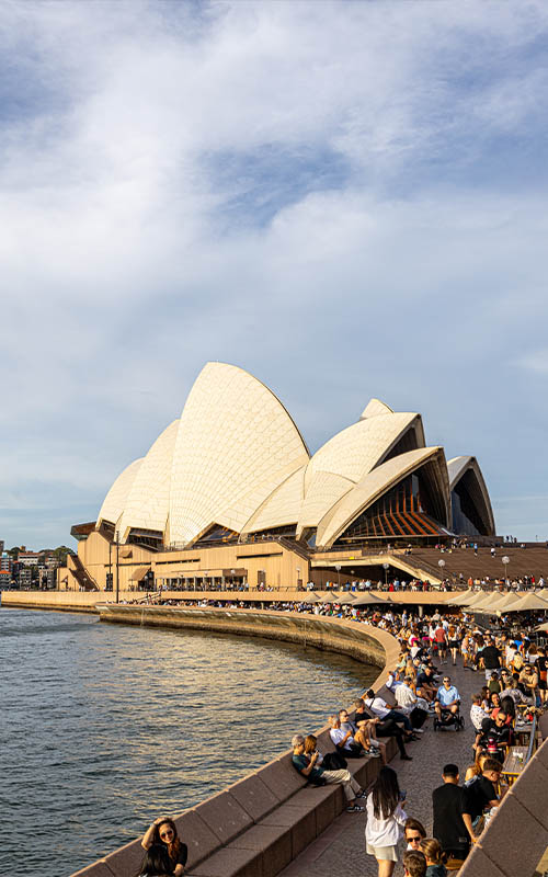 Durch den botanischen Garten näherten wir uns langsam dem „Mrs. Macquarieˋs Chair“. Diese Seite des Parks ist wie eine kleine Landzunge geformt. Von hier hat man den perfekten Blick auf das Opernhaus und die Harbour Bridge. Nach einer kleinen Verschnaufpause und etwas zu Essen (wir waren beim Thailänder, denn ja, Asiatisch geht schon wieder :)) ging es durch den restlichen Park Richtung Hafen und zum Opernhaus. Ein tolles Gebäude, das wir schon zig Mal im Fernsehen gesehen haben. Endlich selbst davor zu stehen war toll. Langsam wurde es schon Abend und unsere Füße müde. Vom Hafen aus kann man mit unserem Ticket auch die Fähre nehmen, die direkt neben der Oper an- und ablegt. Die nächste Fähre ging, als wir gerade an den Steg kamen und so sprangen wir auf. So sparten wir uns den Fußweg zurück über die Brücke, außerdem machte es mega Spaß, an Deck zu sitzen und über das Wasser zu düsen. Wir fuhren eine Station zurück zum Milsons Point, wo wir heute Morgen gestartet sind. Wir nahmen den nächsten Zug zurück in unseren Vorort und nach einem weiteren, 20 minütigen Marsch zurück in die Unterkunft waren wir fast 25.000 Schritte gelaufen. Das reicht für den ersten Tag in Sydney. Da wir eine Woche hier sind, besuchen wir diese tolle Stadt auf jeden Fall nochmal!