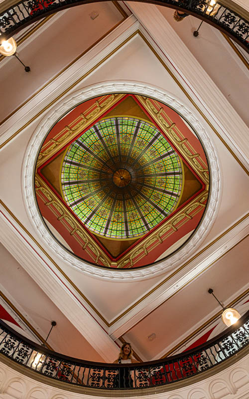Alles von der Decke bis zum Fußboden ist wunderschön verziert. Hier sieht es fast noch mehr nach Hogwarts aus, als an der Melbourner Uni! Eine Studentin sprach uns an, ob wir in den Saal wollten. Wir lehnten ab und schlichen schnell wieder die Treppe hinunter. Wir werden noch für Studenten gehalten! Da fühlt man sich doch gleich wieder ein paar Jahre jünger 🙂