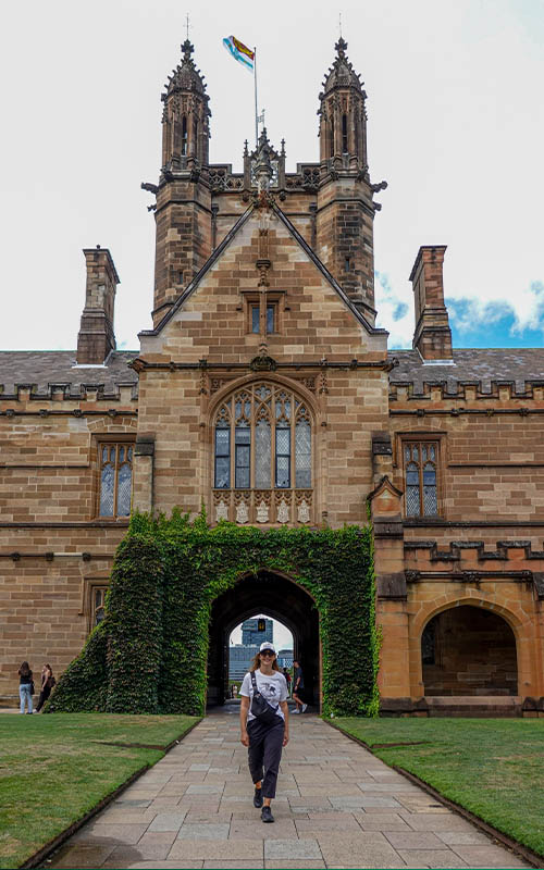 Wir sind heute nochmal nach Sydney gefahren. Dieses Mal haben wir uns die Gegend um die Universität herum angeschaut. Wir schlenderten durch wunderschöne viktorianische Wohnviertel und hinauf auf den Universitätscampus. Auch hier gab es wieder viele alte Gebäude zu bestaunen. Man hat das Gefühl, durch eine Filmkulisse zu laufen, wenn man die mit Efeu bewachsenen Torbögen durchquert. Die Universität von Sydney ist die älteste Universität Australiens. Sie wurde 1850 gegründet und der Campus ist riesig. Wer hier anfängt zu studieren, braucht sicher einen Lageplan! Wir schlichen uns in einem der Gebäude die Treppe hoch vor einen der Lehrsäle. Neben den wunderschönen viktorianischen Buntglas Fenstern sind selbst die Türen noch im Originalzustand.