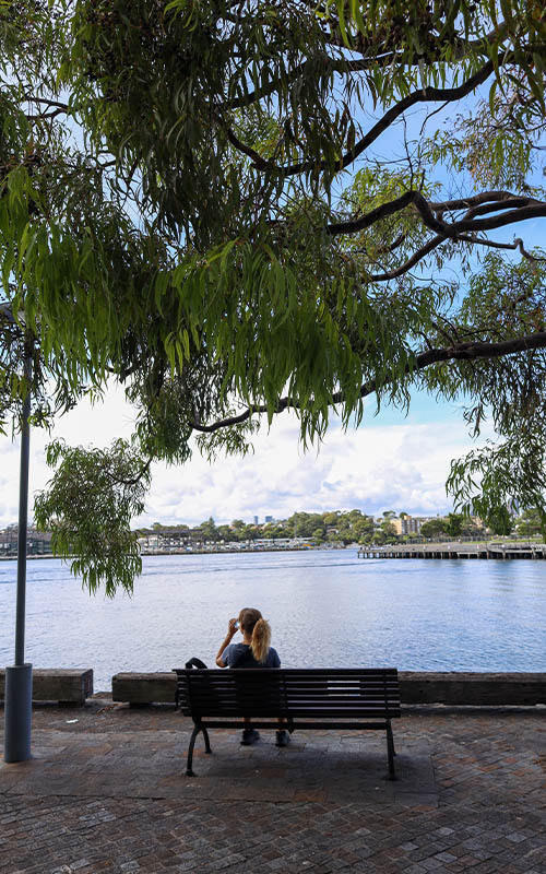Nach dem Frühstück fuhren wir mit unserem Auto zum Bahnhof. Schnell stellten wir fest, dass die Pendler hier unter der Woche alle möglichen Parkplätze im 2 Kilometer- Radius um den Bahnhof herum zuparken. Nach 20 minütiger Suche kamen wir zu dem Schluss, dass wir in dieser Zeit auch zum Bahnhof hätten laufen können! Das machten wir dann schließlich auch und werden das auch in Zukunft so handhaben. Da der Zug nach Sydney im 10 Minuten Takt fährt, erwischten wir schnell den nächsten und stiegen ein. Mit unserer Opal Card klappte alles reibungslos und die größte Überraschung waren wohl die Sitze im Zug. Mit einer einfachen Handbewegung kann man die Rückenlehnen von vorne nach hinten umstellen, so kann man selbst entscheiden, ob man in oder gegen die Fahrtrichtung sitzen möchte. So clever ist man bei der deutschen Bahn noch nicht, aber vielleicht kommt das ja noch irgendwann…