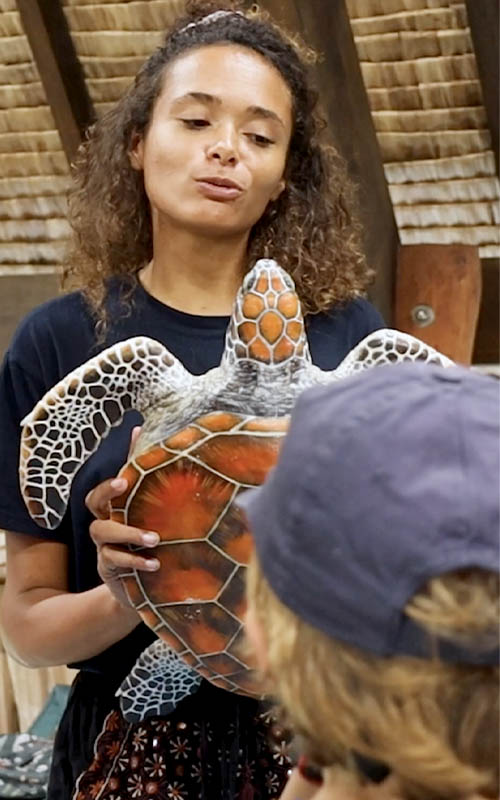 Mit Laurie-Anne sprachen wir über den erzieherischen Auftrag der Organisation. Neben Aktionen, wie z.B. dem Müllsammeln, werden auch regelmäßig Schulklassen eingeladen. In dem großen Fare (traditionelles tahitianisches Holzhaus) wird ihnen viel über Schildkröten und andere Meeresbewohner beigebracht. Durch Spiele in Gruppen und einer anatomisch korrekten Puppe einer Schildkröte, zeigen die Mitarbeiter den Kindern, wie die Tiere leben und warum es so wichtig ist, z.B. keinen Müll ins Meer zu werfen. Eine wirklich tolle Arbeit, die unserer Meinung nach genau bei der richtigen Zielgruppe ansetzt, nämlich der zukünftigen Generation. Ein toller Beitrag, den wir so bei anderen Tierschutzorganisationen noch nicht gesehen haben.