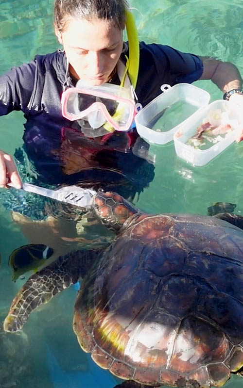 Unser Tag startete heute schon früh für unseren zweiten Drehtermin bei „Te Mano o Te Moana“. Die Naturschutzorganisation mit Schwerpunkt auf Schildkröten hat uns für heute einen weiteren Besuchstermin ermöglicht. Wir hatten dieses Mal die Gelegenheit, mit einer Tierärztin, der Education Coordinatorin und der Gründerin der Organisation zu sprechen. Jade, die Tierärztin, zeigte uns die Vorbereitung und Fütterung der Schildkröten. Von klein bis groß bekommt jedes Tier das für sie notwendige Futter. Die Jungtiere sind im natürlich angelegten Außenbecken in kleineren Bereichen von den ausgewachsenen Tieren und hungrigen Fischen abgetrennt. Sie bekommen Gemüse und kleine Stücke Fisch.