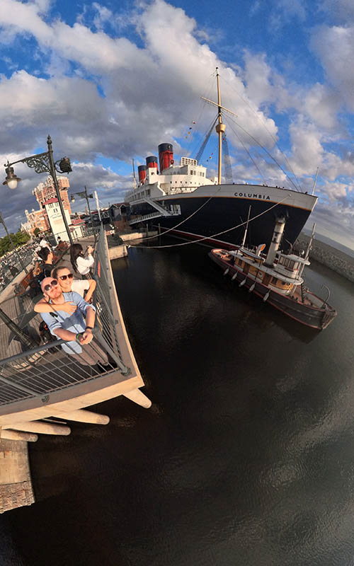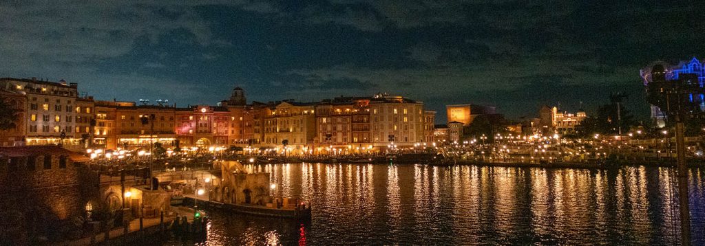 Die komplette „Arielle“ Unterwasserwelt inklusive Schloss war einfach wunderschön. Dort sind wir mit fast allen Bahnen gefahren. Super cool war auch der Teil von „20.000 Meilen unter dem Meer“ mit einem Nachbau der Nautilus. Überhaupt liegt für mich der Reiz des Parks vor allem darin, dass wirklich alle Attrappen dreidimensional nachgebaut und begehbar sind und dabei so authentisch und originalgetreu wie möglich dargestellt werden. So z.B. auch das riesige Schiff „Columbia“, das in einem richtigen Hafenbecken neben einem Nachbau von New Yorks Straßen um 1900 liegt. Der ganze Hauptplatz ist Italien nachempfunden. Hier kann man sich mit Gondeln durch venezianische Kanäle schippern lassen und über eine Art Rialto Brücke zur nächsten Attraktion gelangen.