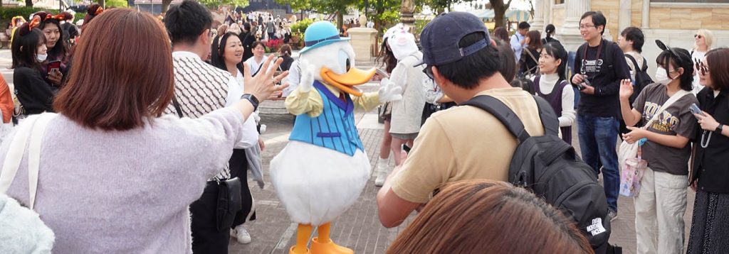 Die Mickeyohren, die es in allen Farben und Varianten alle 5 Meter im Park zu kaufen gibt, sind besonders beliebt! Wirklich ALLE kleinen Kinder waren kostümiert! Kleine Minniemäuse und Prinzessinnen hüpften überall um uns herum und bei den Jungs waren Woody aus „Toy Story“ und „Baymax“ sehr beliebt! So etwas Süßes gibt es wohl nur hier! Alleine um die verkleideten Besucher zu beobachten hätte sich der Eintritt schon gelohnt. Die Japaner stehen einfach auf Cosplay und fotografieren sich gerne vor jeder Attraktion!