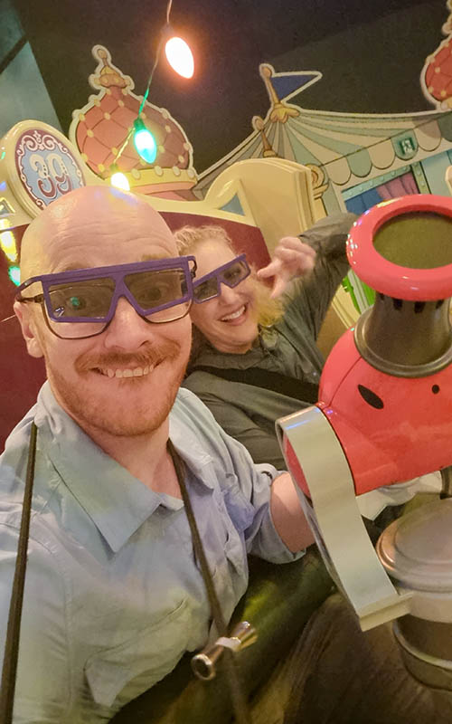 Das Toyville, das der „Toy Story“ Welt gewidmet wurde, war unser letztes Fahrgeschäft. Hier konnte man interaktiv in 3D auf Zielscheiben schießen und Punkte sammeln, während man durch verschiedene Kulissen gefahren wurde. Die drei ganz großen Achterbahnen haben wir schweren Herzens auslassen müssen, denn die hatten alle den ganzen Tag lang eine Wartezeit von 2 Stunden! Woher wir das wussten? Natürlich weil es für den Park eine App fürs Handy gibt, die einem nicht nur zeigt wo sich was befindet, sondern auch wie lange man an welcher Attraktion ansteht und wann welche Show gezeigt wird. Alleine um den riesigen Park einmal ablaufen zu können brauchten wir den ganzen Tag (wir haben mal wieder die 20.000 Schritte geknackt!), deswegen sind wir nichts über 20 Minuten Wartezeit gefahren. Wir haben aber auch nicht das Gefühl, etwas verpasst zu haben. Im Gegenteil! Alles war so groß, viel und beeindruckend das man förmlich erschlagen wurde. Im positiven Sinne natürlich 🙂