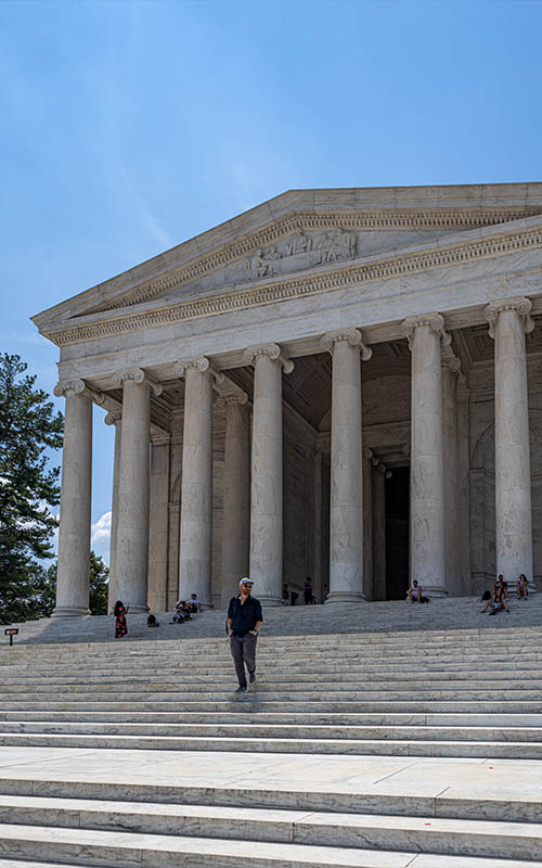 Wir besuchten heute auch das „Jefferson Memorial“. Neben dem Washington- und Lincoln Memorial ist es eines der drei großen Denkmäler in Washington und ehrt den dritten Präsidenten der USA, Thomas Jefferson. In dem an das Pantheon erinnernde Gebäude steht eine große Bronzefigur von Jefferson. Umgeben vom großen West Potomac Park mit See ist das Memorial ein tolles Fotomotiv. An den Innenwänden sind verschiedene Auszüge aus Reden Jeffersons eingraviert. Er gilt nicht nur als einer der Gründerväter der USA, sondern auch als Hauptverfasser der Unabhängigkeitserklärung. Ein schöner Besuch, trotz heute deutlich wärmeren Temperaturen.
